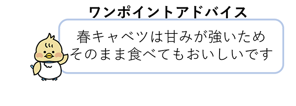 春キャベツは葉がやわらかく、甘みが強いことが特徴です。